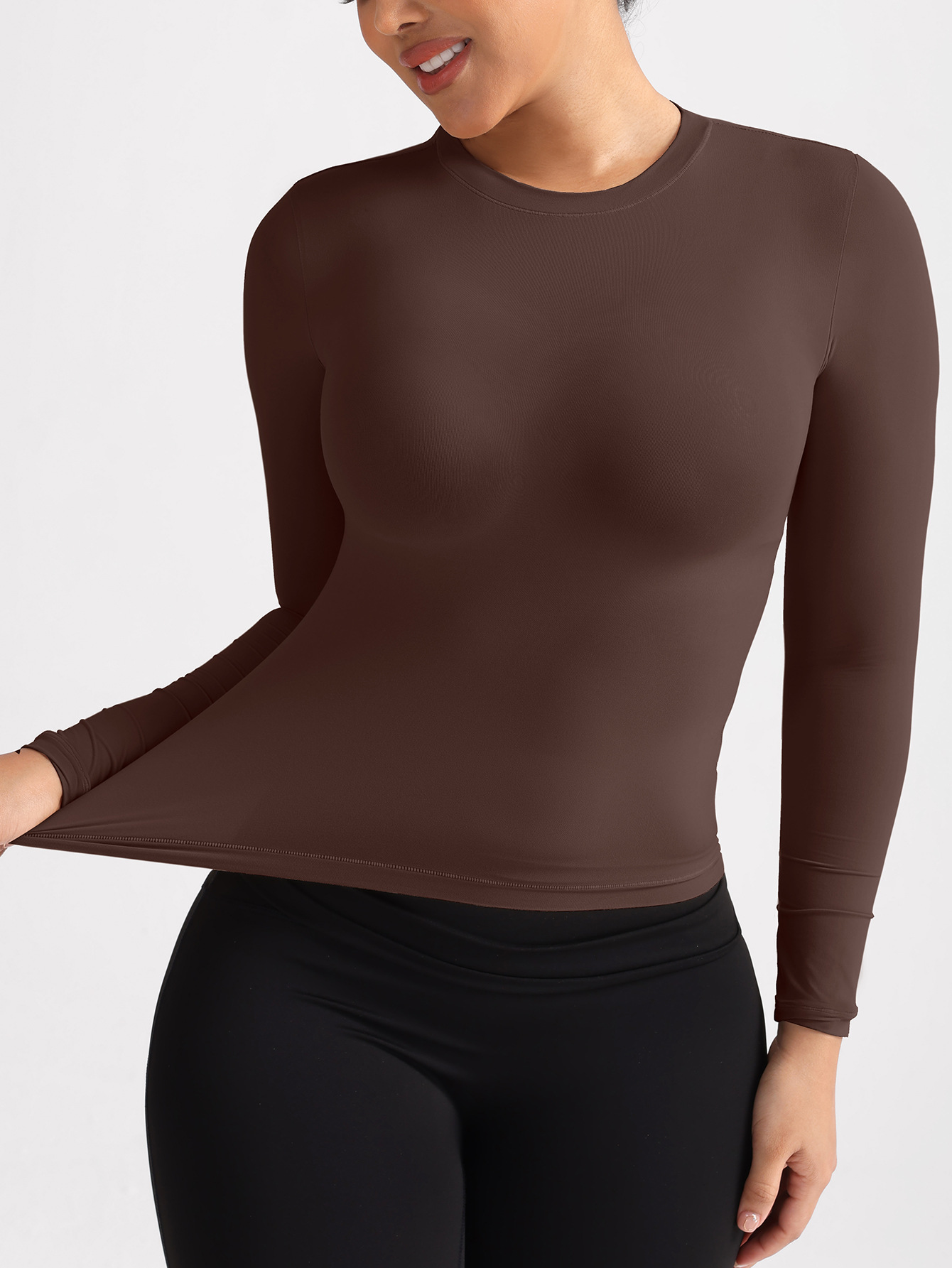 No bulky seams here! The long sleeves gently smooth and shape your silhouette, creating a neat, refined look.